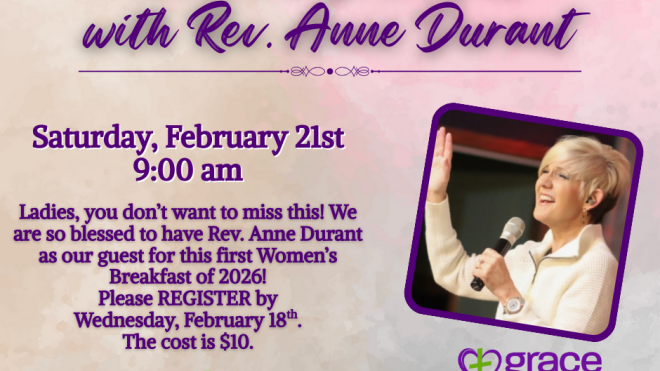 Ladies, you don’t want to miss this! We are so blessed to have Rev. Anne Durant as our guest for this first Women’s Breakfast/W.E.L.L. of 2026! Come enjoy a hearty...